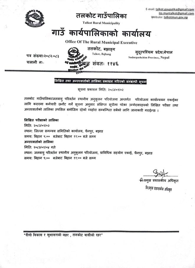 लिखित तथा अन्तरवार्ताको तालिका प्रकासन गरिएको सम्बन्धमा !!!