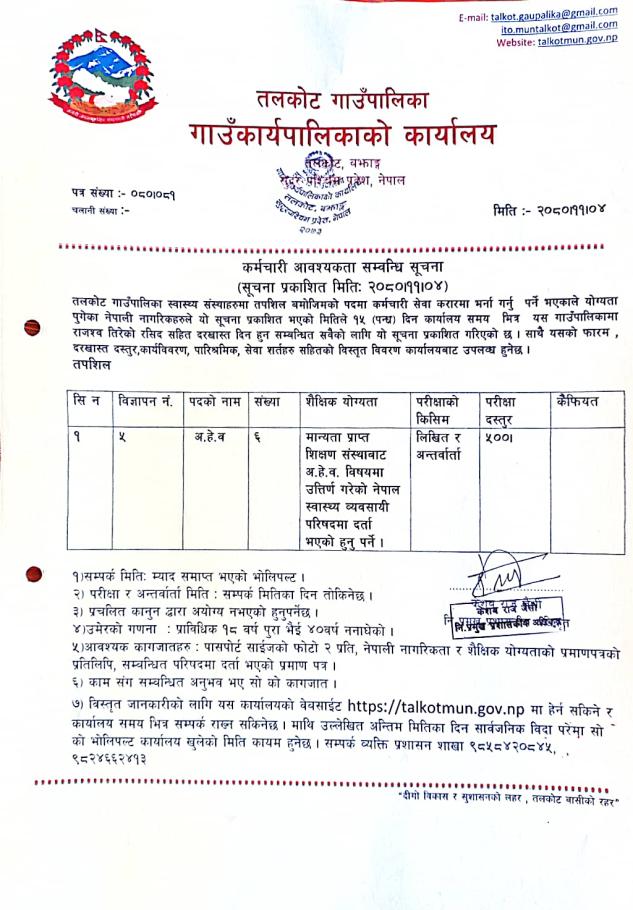 कर्मचारी आवश्यकता सम्बन्धि सूचना(अ.हे.व.)